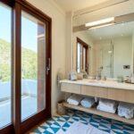 Another ground-floor room opens onto the pool terrace, while the bedrooms on the upper floor enjoy private terraces with amazing sea views. The terrace of the master bedroom is particularly generous; a private space in which you can delight in Serena Vista’s glittering sea views.
